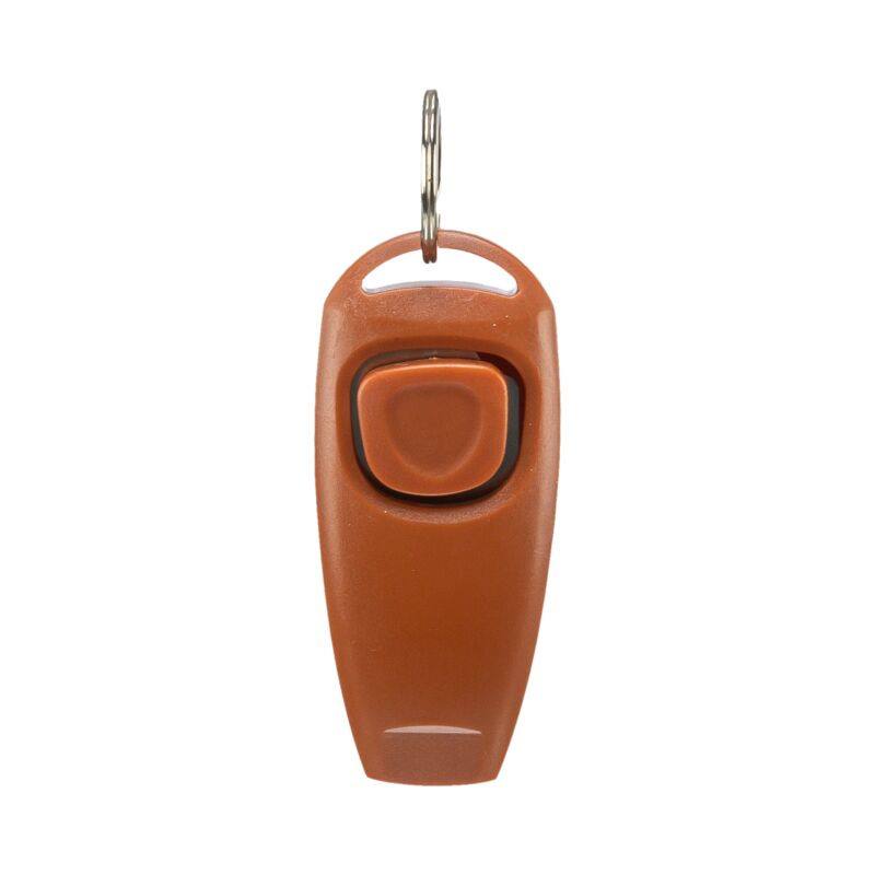 - Ce clicker sifflet peut aussi faire triple emploi : quand vous voulez faire une séance clicker, vous l’utilisez comme clicker ; quand vous voulez juste entraîner au sifflet, vous utilisez la partie sifflet ; et vous pouvez enfin coupler l’ensemble. Certains utilisent ce clicker à différent sons pour des entraînements à distance. Par exemple pour un travail à l’eau. Le sifflet produit un son unique qui se propage parfaitement.