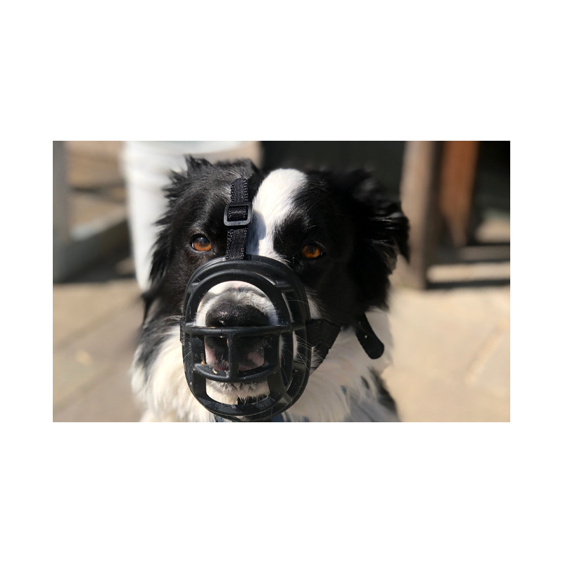 Très bien conçue. Permet au chien de respirer sans difficultés et de continuer à lui donner des friandises. Solide et très sure
